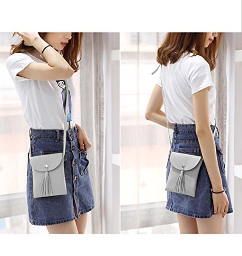 RARITY-US Women Grils Small Crossbody Shoulder Bag Tassel Cell Phone Purse PU Leather Wallet Satchel