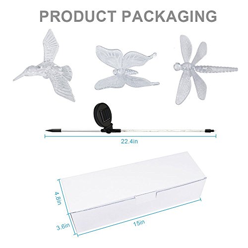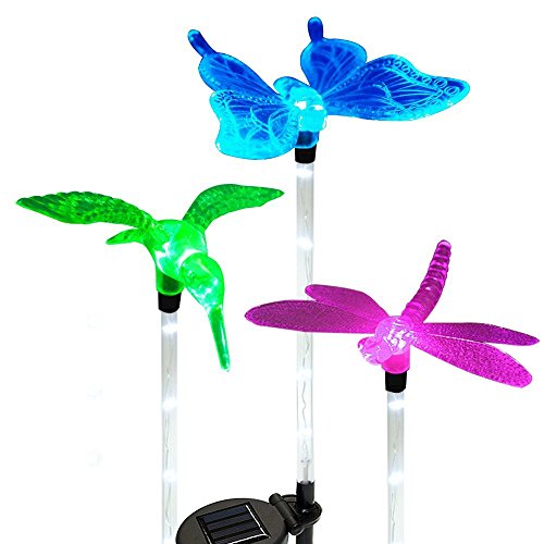 Outdoor Solar Garden Decoration Lights - Dolucky Upgraded Color Changing LED Solar Lights with Transparent White LED Light Tube for Outdoor Decoration, 3 Pack (Hummingbird, Butterfly, Dragonfly)