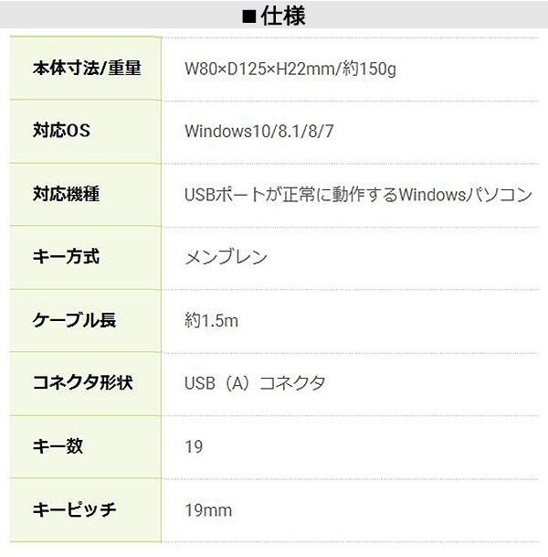 fk094igrjsシンプルで使いやすいUSBテンキーボードです サイズ 個装サイズ:13×24×4.2cm 重量 個装重量:174g 仕様 使用方法はパッケージ台紙に記載 保証期間:6ヶ月 生産国 日本 すぐに使えるシンプルUSBテンキーボード 【特徴】 デスクトップキーボードと同じ間隔の19mmキーピッチで使いやすい ※キーピッチとは、キーの中心から隣接するキーの中心との間隔のこと メンブレン方式採用ストロークが長く、深くて確実な入力が得られます LEDライトの表示でNumLockが一目で確認できます コンパクトサイズで机の上も広々使えます 使用頻度が高く、計算に便利な00キー シンプルで使いやすいUSBテンキーボードです