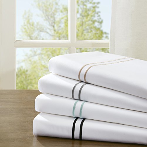 - The Madison Park 400 Thread Count Embroidered Cotton 4 Piece Sheet Set is made from 100% cotton sateen, creating a soft and luxurious feel. The 400 thread count fabric features rich embroidered details for an elegant look, while the sateen weave creates an alluring sheen. Machine washable for easy care, this 100% cotton sheet set includes: 1 Flat Sheet, 1 Fitted Sheet, and 2 Pillowcases. The fitted sheet fits up to 17" mattress.