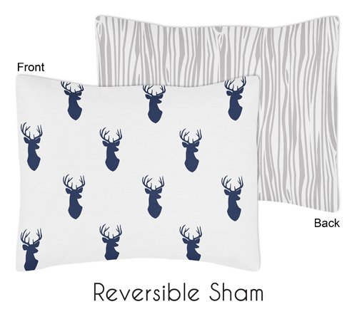 Sweet Jojo Designs Standard Pillow Sham for Navy and White Woodland Deer Boys Bedding Sets