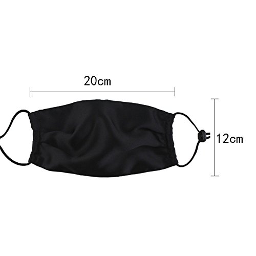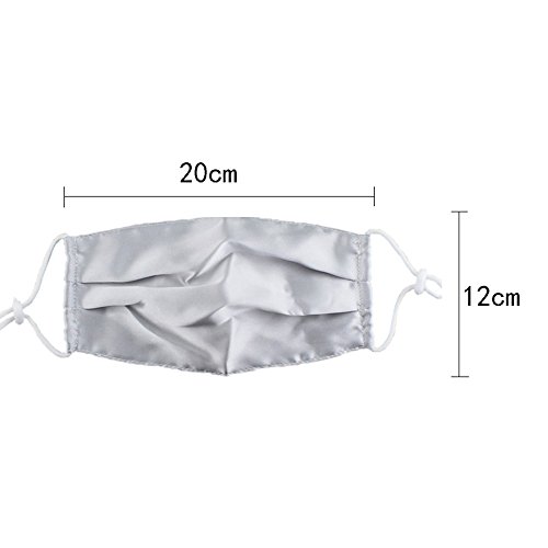 -. Feature : Made of high quality mulberry silk, soft skin care, comfortable and breathable, protects you from flu, sunshine, dust, or any other harmful substances / Soft elastic band, buttons can be adjusted for different face / Quickly absorb sweat, and can achieve quick-drying effect / High filtration capacity helps keep your face mouth covered and protected from germs, chemicals, dusk, particles, fluids, pollenollution face mask / Great for medical, dental, nail salons, occupational, construction, paint, allergies, gardening and food processing, cooking, baking and etc