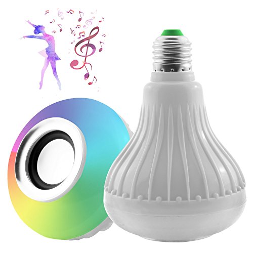 AIDOUT LIGHT BULBS - LED RGB WHITE COLOR MUSIC LIGHT BULB - E27 WIRELESS SMART DIMMABLE BLUETOOTH CONTROL BUILT-IN AUDIO SPEAKER WITH REMOTE CONTROL FOR HOME, STAGE, PARTY DECORATION