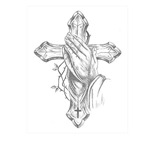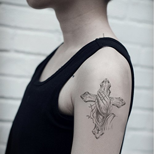 Set of 2 Waterproof Temporary Fake Tattoo Stickers Vintage Grey Cross God Pray
