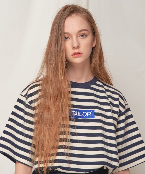 테일러 스튜디오(TAILOR STUDIO) 테일러 베이직 스트라이프 로고 반팔티 (네이비)