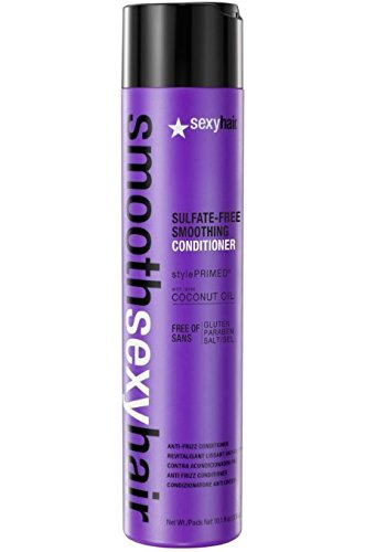 Smooth Sexy Hair Sulfate-Free Smoothing Shampoo and Conditioner _ 10.1 Ounce _ Anti Frizz Hair Products _ Hair Smoothing Shampoo and Conditioner with Hair Protectant Coconut Oil Hair Formula. Sulfate, Gluten, Paraben and Salt Free Smoothing Shampoo advanced formula is infused with coconut oil that helps fight frizz for smooth results that last. By preventing cuticle lift, friction and humidity attacking the hair this shampoo transforms frizzy, wavy and curly textures into sleek shiny hair for extended periods of time. Gently cleanses hair while adding moisture by penetrating the hair shaft. *Safe to use on chemically straightened hair or extensions. Coconut Oil Softens and relaxes dry, coarse, disobedient hair Phytenso Fights & locks out humidity, smoothes hair from root to tip, helps repair split ends & seal cuticle Varisoft BT Static Control Chromaveil-LQ Protects color from fading UV absorbing. Sulfate, Gluten, Paraben and Salt Free Smoothing Conditioner advanced formula infused with coconut oil helps fight frizz for smooth results that last. It strengthens and protects hair from damage and breakage and conditions it by coating the outer cuticle layer for extra shine, softness and manageability. Over time frizzy, wavy and curly hair textures transform into smooth, sleek, shiny and frizz free hair that shines with radiance. *Safe to use on chemically straightened hair or extensions. Coconut Oil Softens and relaxes dry, coarse, disobedient hair Phytenso Fights & locks out humidity, smoothes hair from root to tip, helps repair split ends & seal cuticle Varisoft BT Static Control Chromaveil-LQ Protects color from fading UV absorbingFeature