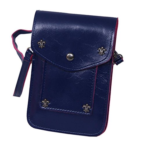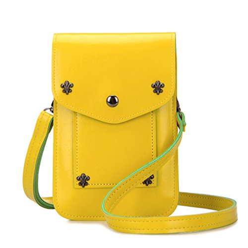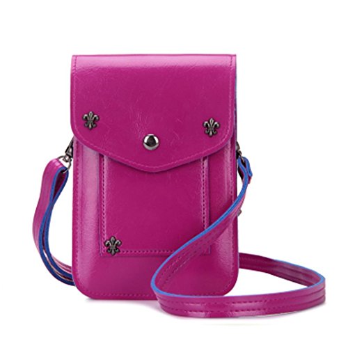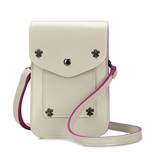 WaitingU Multipurpose PU Leather Cellphone Mobile Pouch Rivet Girls Cute Mini Crossbody Shoulder Bag Detachable Strap for Apple iPhone Samsung Note Sony HTC LG Smart Phones Under 5.7''