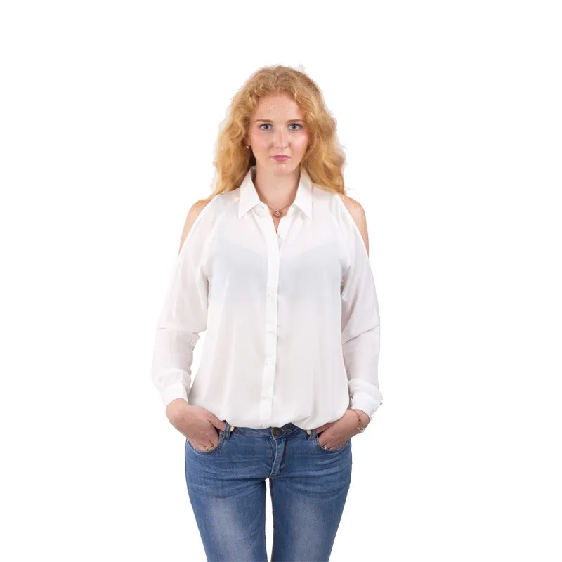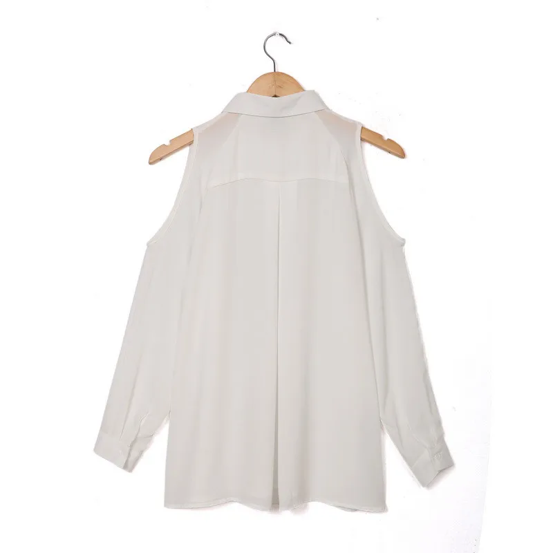 Women off shoulder long shirts sexy chiffon tops turn down collar blouse Blusas Femininas long sleeve casual plus size LT426