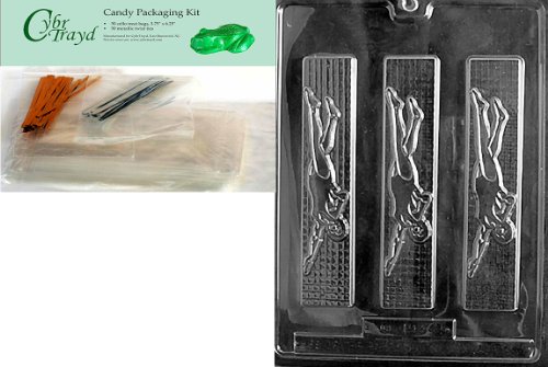 Cybrtrayd Mdk50-S014 Female Swimmer Sports Chocolate Candy Mold, Includes 50 Cello Bags, 25 Gold and 25 Silver Twist Ties