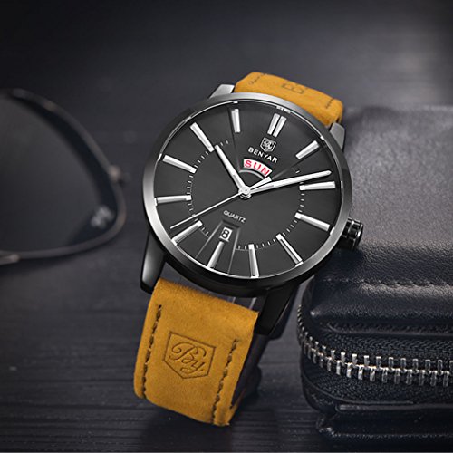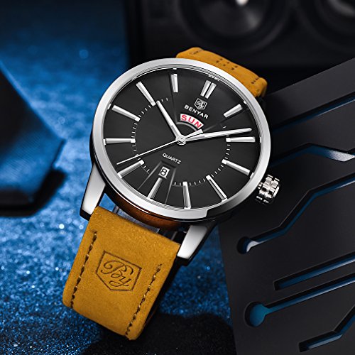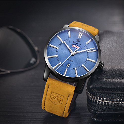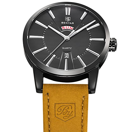 -. Binding : Watch -. Brand : BENYAR -. Department : Mens -. Feature : PRECISE TIME KEEPING: Quartz Movement, provide precise and accurate time keeping. / QUALITY LEATHER BAND: Scratch Proof Mineral Glass. Genuine Leather Band Provide Comfortable and Gentleman Wearing Experience. / WATERPROOF FOR DAILY USE: Waterproof (30 M) - 3ATM. Perfect for all kind of business, casual, indoor and outdoor activities and daily use. NOTE: Try not to let the watch in contact with steam and hot water. / High Quality Watches And Exquisite Packaging. It a great gift for yourself , your family or your friends. / Package: Watch * 1; Original Watch Box * 1; Instruction Manual * 1; Warranty card * 1 -. Label : BENYAR -. Manufacturer : BENYAR -. MPN : BY-5101M -. PackageQuantity : 1 -. PartNumber : BY-5101M -. ProductGroup : Watch -. ProductTypeName : WATCH -. Publisher : BENYAR -. Studio : BENYAR -. Title : BENYAR Men's Quartz Waterproof Watches Business Gentleman Brown Leather Band Strap Wrist Watch