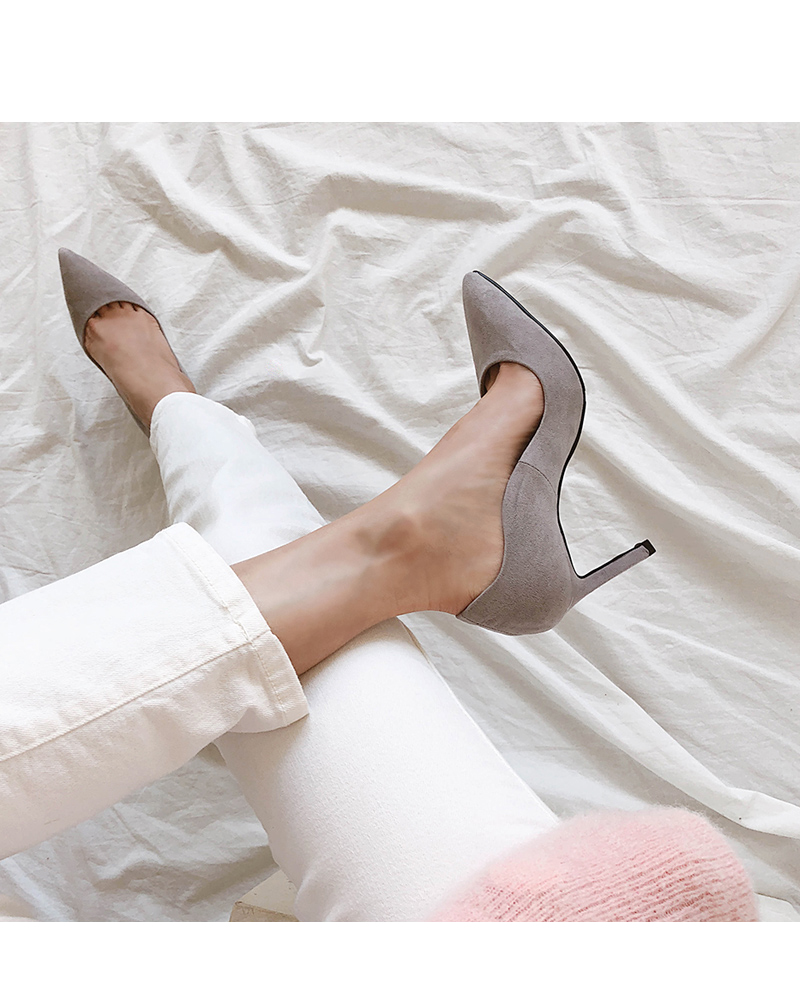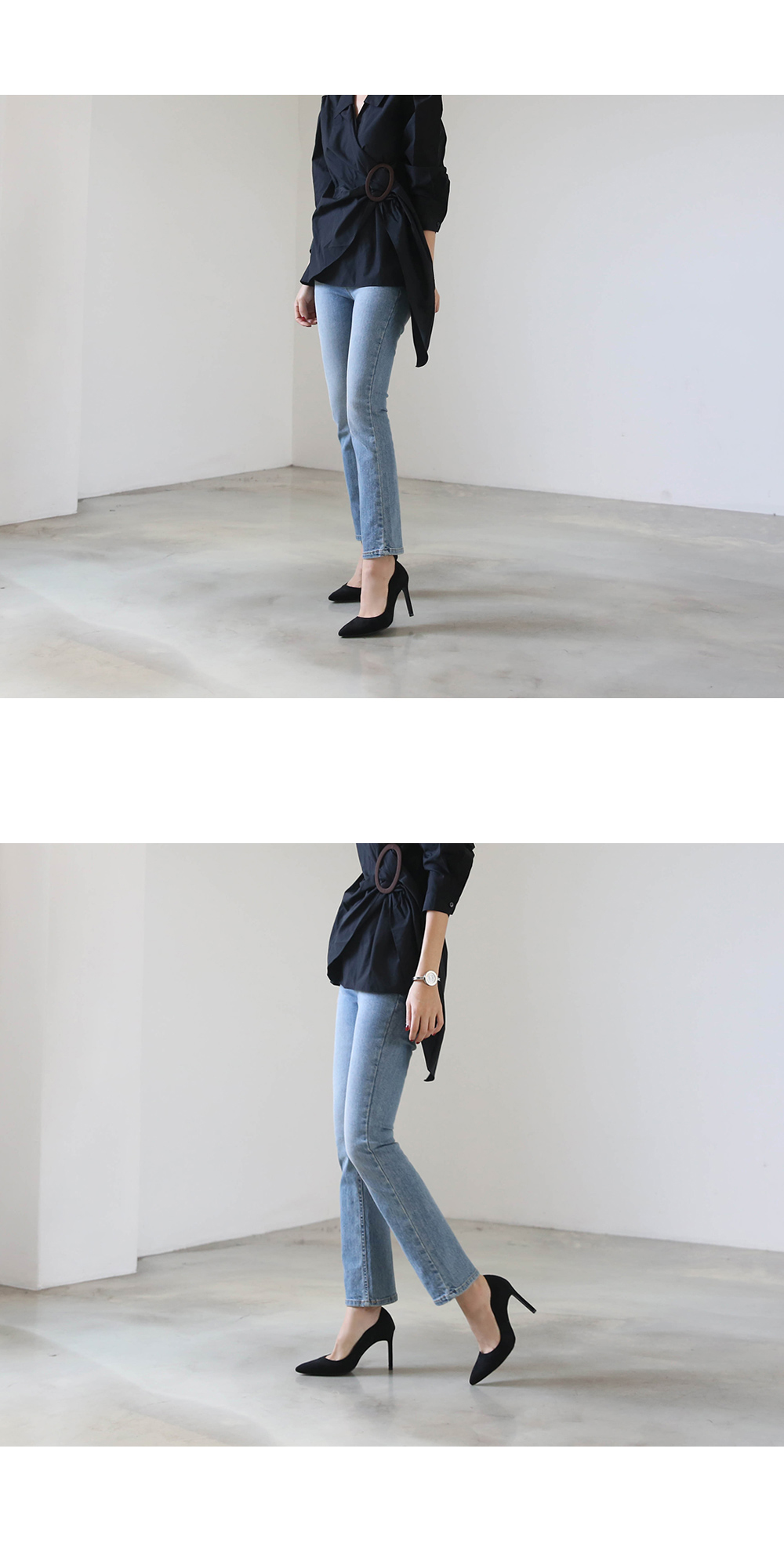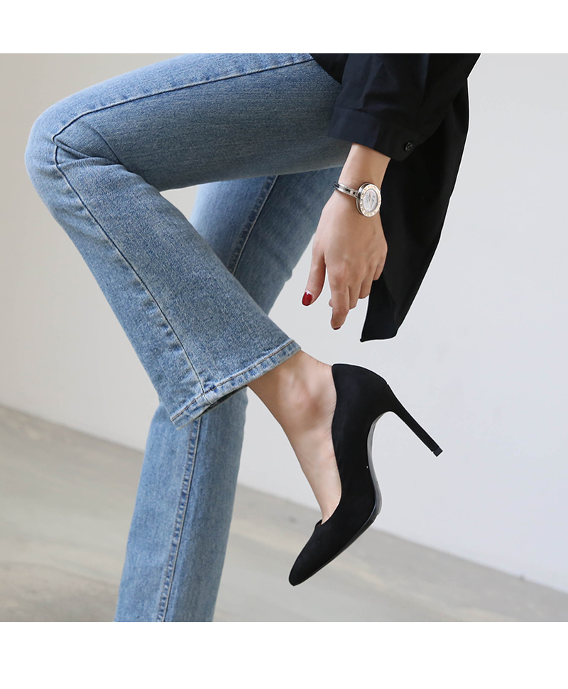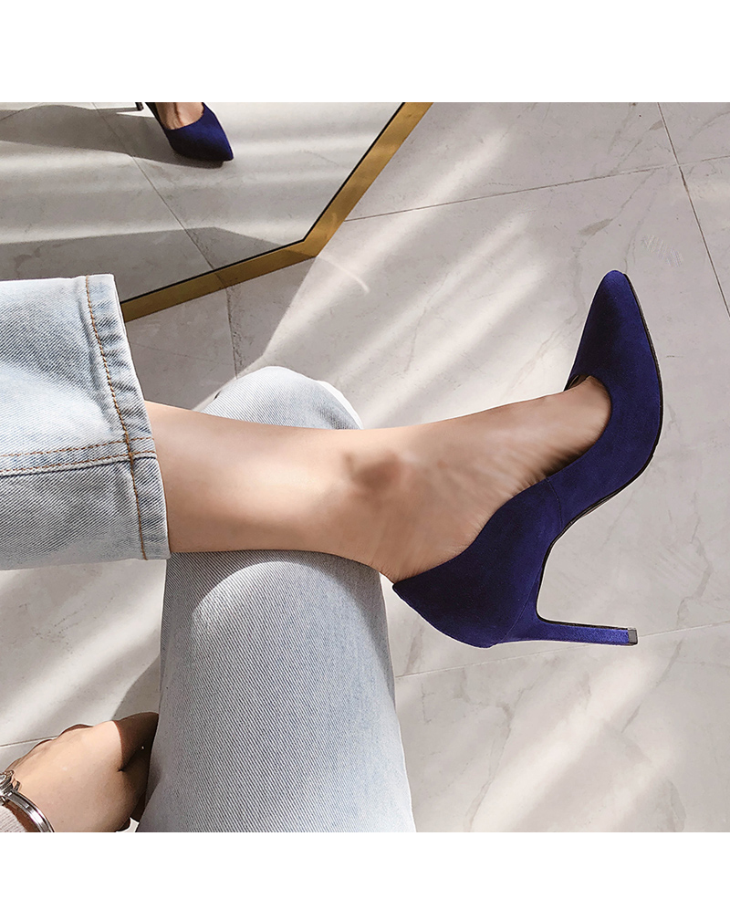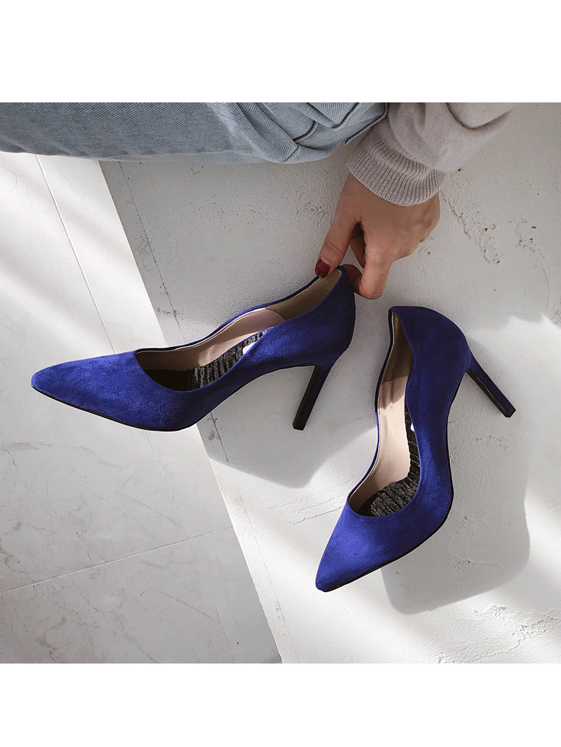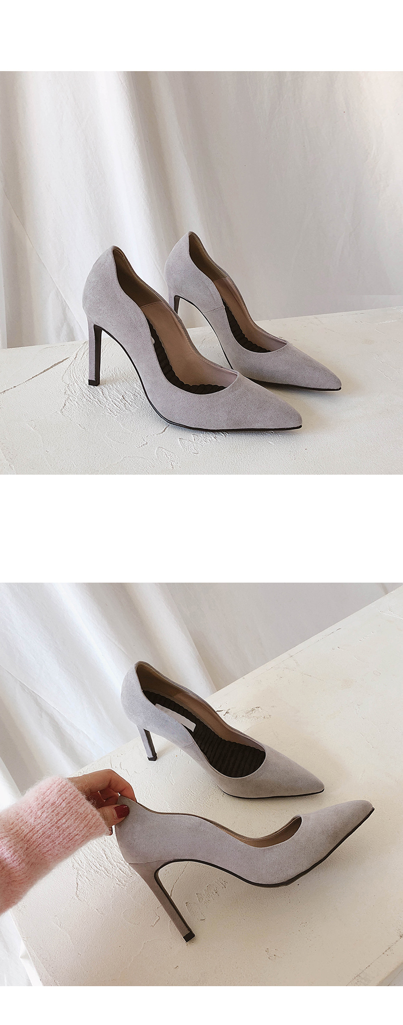 인조스웨이드의 깔끔한 웨이브 쉐입의 터치라인과 슬림한 바디라인이 만나는 하이힐 펌프스입니다.