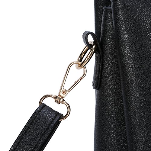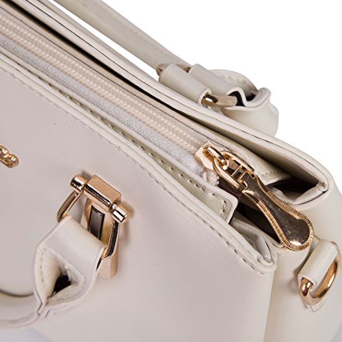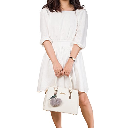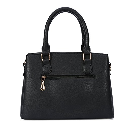 -. Feature : Decorative Gold tone Hardware; Zip pockets in Middle and Back; Detachable Shoulder Strap and Top-zipper Closure; Simple Pendant Decoration, Comes with a free ornament / DIMENSIONS: 11.8"W x 8.3"H x 4.7"D; Handle Drop: 7.1" / MATERIAL: High Quality PU Faux Leather / POCKETS: 1 Exterior Back Zipper Pocket, 3 main Pockets, 2 interior pockets, 1 zipper porcket / OCCASIONS: This handbag is perfect for daily use, work, shoping, travel etc.