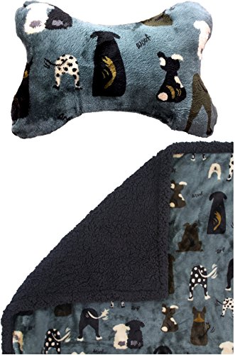 Studio : Ultra Paws Publisher : Ultra Paws Binding : Misc. Product Description This luxurious pet blanket is made with ultra-soft fleece and is sure to make your furry friend comfortable anywhere. Ideal for adding to your pet?s bed or for placing over furniture, in your car or simply on the floor. Features original art designs ? wagging tails and modern dog bone pattern. Comes in four styles: Waggers Tan/Chocolate, Waggers Blue/Black, Bone Apart Tan/Cream and Bone Apart Black/Tan. Waggers Blue and Bone Apart Tan are 30 x 40?. Waggers Tan and Bone Apart Black are 50 x 60?. Ultra plush polyester fleece with Sherpa back. Machine wash cold separately. Gentle cycle. Use mild detergent only. Do not bleach. Tumble dry low. BONE HEADTM Travel Pillow Soft and luxurious travel pillow to comfort any Bone HeadTM! The pillow prevents neck strain and ensures you are relaxed and comfortable in your vehicle. The patterns compliment the MyBlankie!TM and complete your travel kit. Compact, portable, and light weight, with a generous 20 inch elastic band to attach to your car seat. The cover is removable with a zipper closure and machine washable. The inner liner is stuffed with plush fiber fill. 12" x 9" x 3 ½ inches. Remove the zipper cover, close zipper and machine wash cold separately. Gentle cycle. Use mild detergent only. Do not bleach. Tumble dry low. Remove promptly. 0