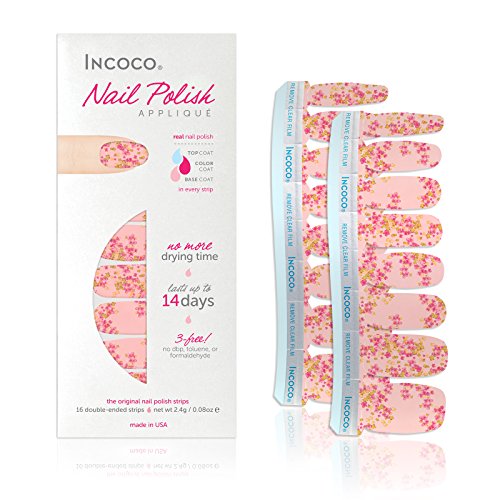 -. Binding : Misc. -. Brand : Incoco -. EAN : 0812650018249 -. Feature : No more dry time, smears or smudges; Get salon quality results in minutes right at home / Made with real nail polish, Easy to apply, Removes easily with nail polish remover / Includes 2 sheets with 16 total strips in varying sizes to ensure a perfect fit / A wide variety of colors and finishes; Mix and Match to create your own unique look / Get the perfect manicure every time -. IsAdultProduct : 0 -. Label : Incoco -. Manufacturer : Incoco -. MPN : EDS114 -. PackageQuantity : 1 -. PartNumber : EDS114 -. ProductGroup : Beauty -. ProductTypeName : BEAUTY -. Publisher : Incoco -. Studio : Incoco -. Title : Incoco Nail Polish Strips, Nail Art, Cherry Blossoms -. UPC : 812650018249