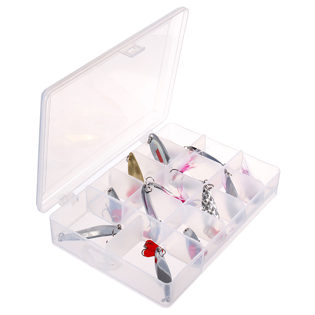 Product Details:Specifications of HKS Fishing Spoon Spinner Lure Baits Hook Ideal Pike Trout Salmon + Tackle Box 14Pcs