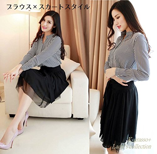K-grasso+ (K 그라《소》) 빈틈《파 셔츠》 스트라이프 무늬 블라우스 잡 보 셔츠 슈트 포멀 블랙 네이비 M L XL