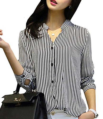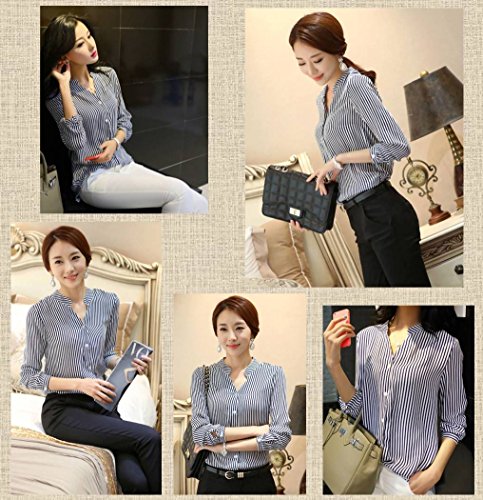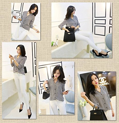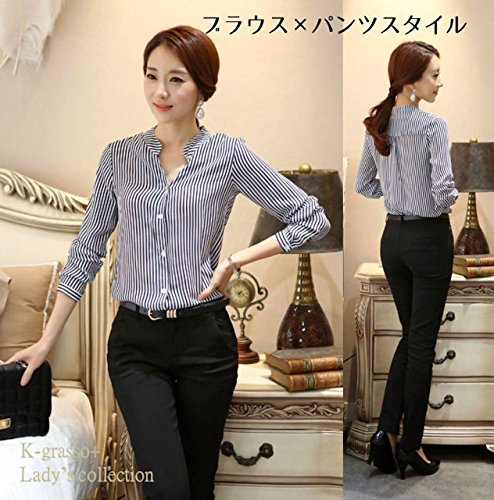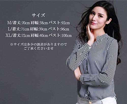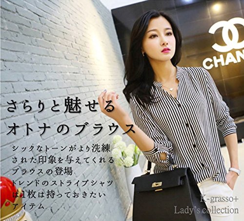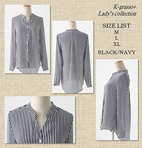 원본상품명: (ケイグラッソ) ストライプ 柄 スキッパ? シャツ vネック yシャツ オフィス ol レディ?ス 紺 (02. ブラック L)