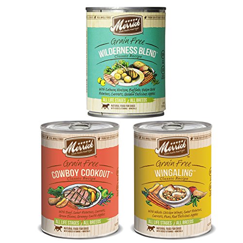 Merrick Classic Recipe Canned Dog Food Variety (12 Pack) - Wilderness Blend, Cowboy Cookout & Wingaling