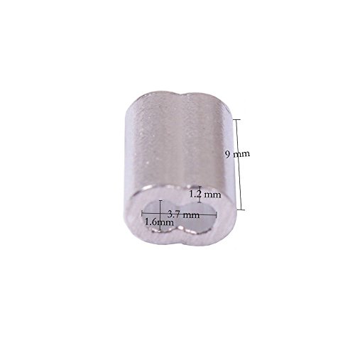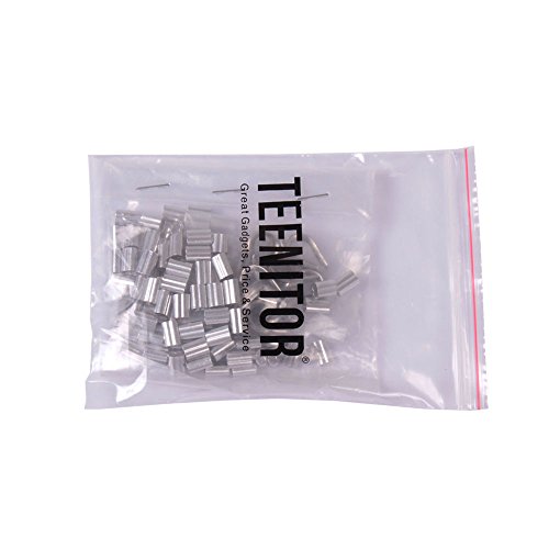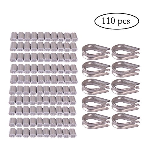 Teenitor High Quaity 100 pcs 1/16-inch Wire Rope Aluminum Sleeves Clip Fittings Cable Crimps + 10 pcs M2 Stainless Steel Thimble Combo