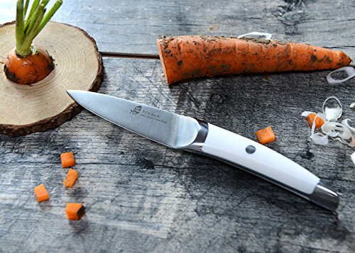 • 3.5-Inch paring knife by TUO; ideal for peeling, paring, chopping and mincing