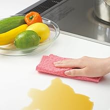 自重の約10倍もの水分を吸収する、スコッチ・ブライト セルロースクロス 普段使っている食器ふきんなどでは、どうしても拭き残しがあったり、お手入れに手間がかかることもあります。「3M スコッチ・ブライト セルロースクロス(ピンク&ブルー) CCL-PB」は、天然植物せんい素セルロースを使用した拭き取り用クロス。自重の約10倍もの水分を吸収し、水ハネや液ダレをキッチリ拭き取ります。また、乾燥も速いのでとても衛生的です。 | シンク周りや食器、グラスの水分もキッチリ拭き取れる 「3M スコッチ・ブライト セルロースクロス(ピンク&ブルー) CCL-PB」は、今までにない拭き取り感覚で様々なシーンにお使いいただけます。洗ったグラスや食器を乾かすふきんとして利用したり、ドレッシングの液だれを拭いたり、また、シンク周りやキッチンカウンターを拭き取るキッチンクリーナーとしてはもちろん、お料理中の水跳ねを拭き取るなど、様々なシーンでキッチリと水分を吸収します。 | キッチン家電やテーブルなどの毎日のお手入れにも便利 テーブルに付いた手垢や水ハネ汚れの拭き取り、タイル、蛇口、シンクの清掃(時間の経過した水垢はとれません)、IHなどのキッチン家電、ガラストップのガステーブルの毎日のお手入れ(焼き付いたコゲ、時間の経過した汚れなどはとれません)などにもお使いいただけます。 | 3Mのキッチンふきんで、家事をもっとおしゃれにキレイに たくさん吸水してもラクに絞ることができるほか、繰り返し洗って何度も使うことができ、漂白も可能です。毎日使うキッチンだから楽しくおしゃれに、そしてキレイにしたい。そんな想いにお応えする「3M スコッチ・ブライト セルロースクロス(ピンク&ブルー) CCL-PB」は、あなたのキッチンクリーニングスタイルをデザインします。 |