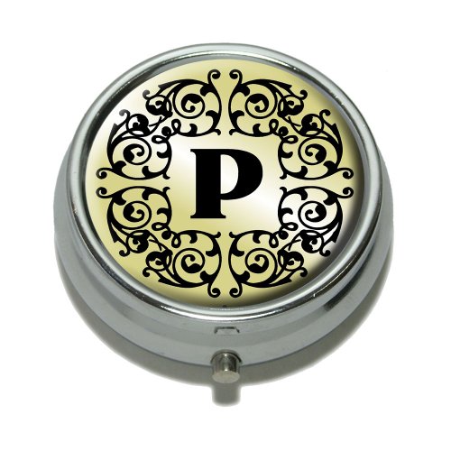 (Graphics and More)/Medical Supplies Equipment/Mobility Daily Living Aids/DIRECT FROM USA/Graphics and More Letter P Initial Black White Tan Pill Case Trinket Gift Box