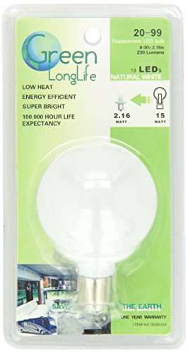 Green LongLife 9090104 LED Replacement Vanity Light Bulb with 20-99/1156 base 230 Lumens 12v or 24v Natural White