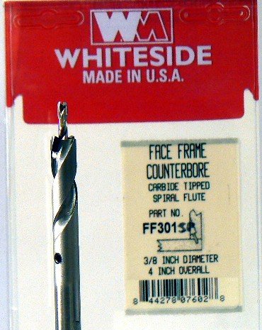 Whiteside Router Bits FF301SP Spiral Face Frame Counter Bore Carbide Tipped 3/8-Inch Cutting Diameter, .136 Pilot Diameter and 4-Inch Length