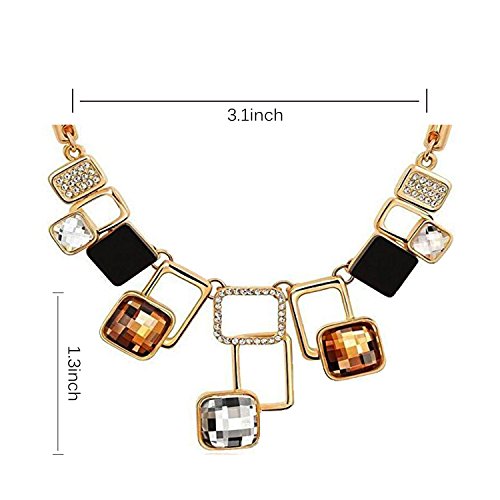 -. Feature : Necklace Size: 15'' chain length+ 2.8'' extended chain length, Pendant Size: 1.3*3.1 inches, Necklace Weight: 5.15 ounces; Earrings Size: 1*0.6 inches, Earrings Weight:1.87 ounces / Outstanding feature of this jewelry set is allergy free, original design and handcrafted micropave. Moreover, lobster claw clasp makes this adorable necklace safety and reliability which is sure to become one of your favorite pieces / The material of imported Austria bare crystal and Czech rhinestone is a possible basis for the beautiful appearance. In addition, it takes advantage of Germany mirror polishing technology and advanced crystal cutting technology, after cast-thickening, fine grinding and 3 Layer gold plating as well as using high precision cutting process, the pendant is smooth, delicate and persistent sparking, the angle of each cutting perfectly smooth. / This classic creation exudes timeless beauty. Irregular shaped geometric crystal design, fashion personality. Whether under the natural light or lights, are extremely shining and glaring. You will be the most attractive one in any great occasion.(e.g: prom, birthday party, wedding ceremony, workplace) / Every package comes with wonderful gift box. Perfect present for your intimate and your lover which results in a better relationship.