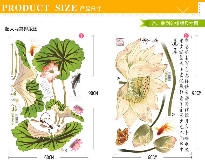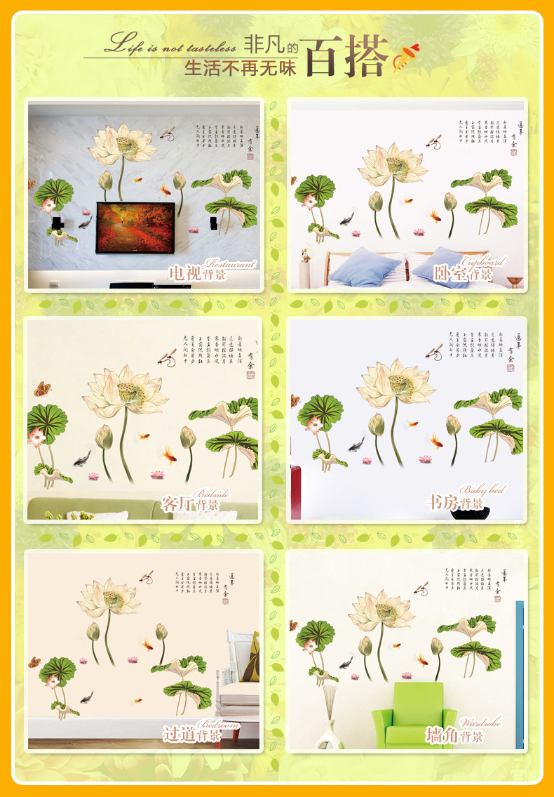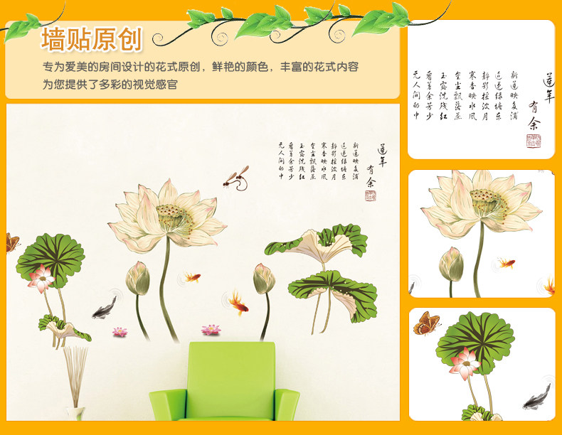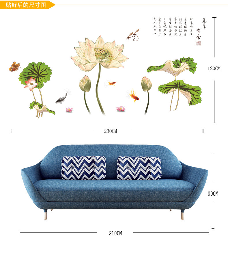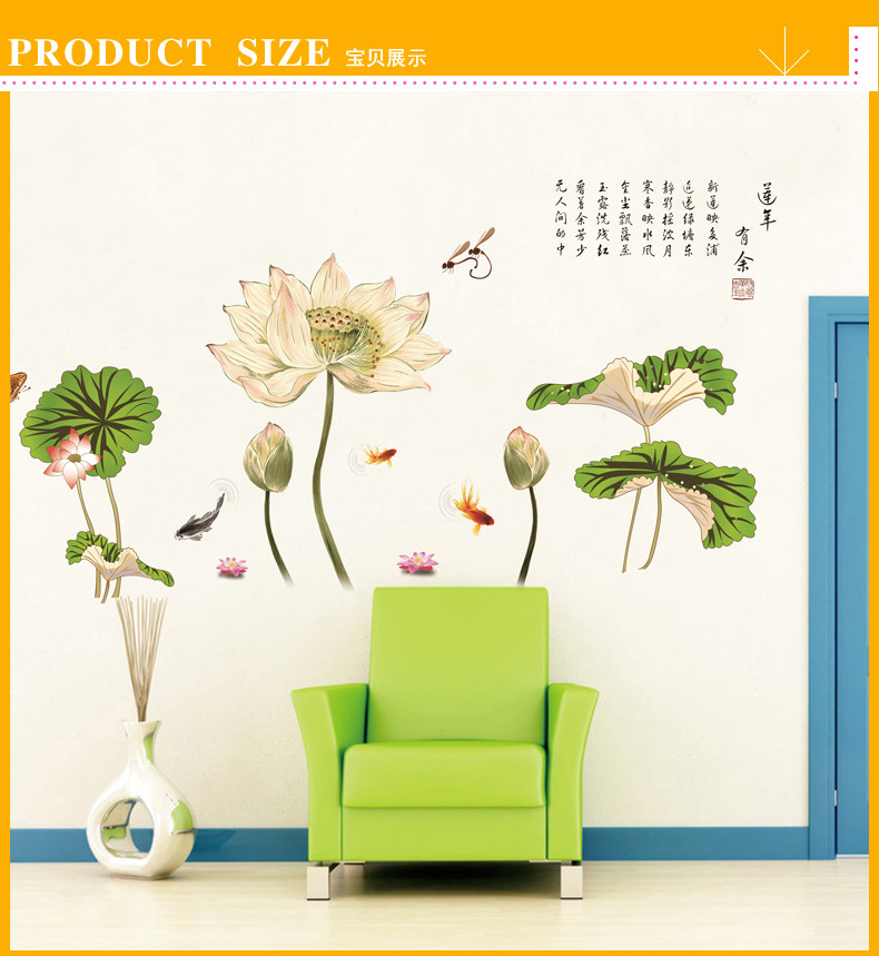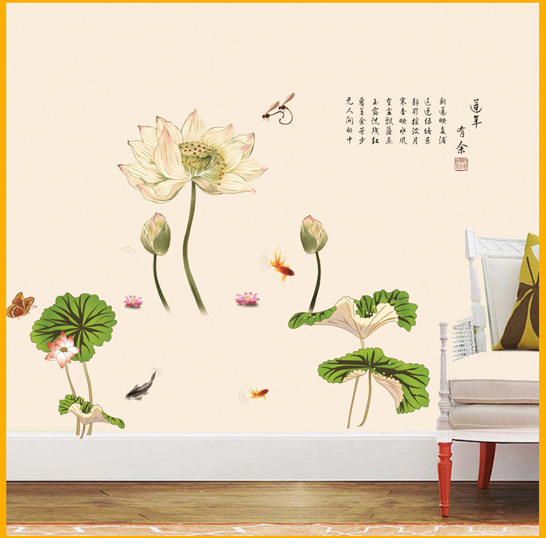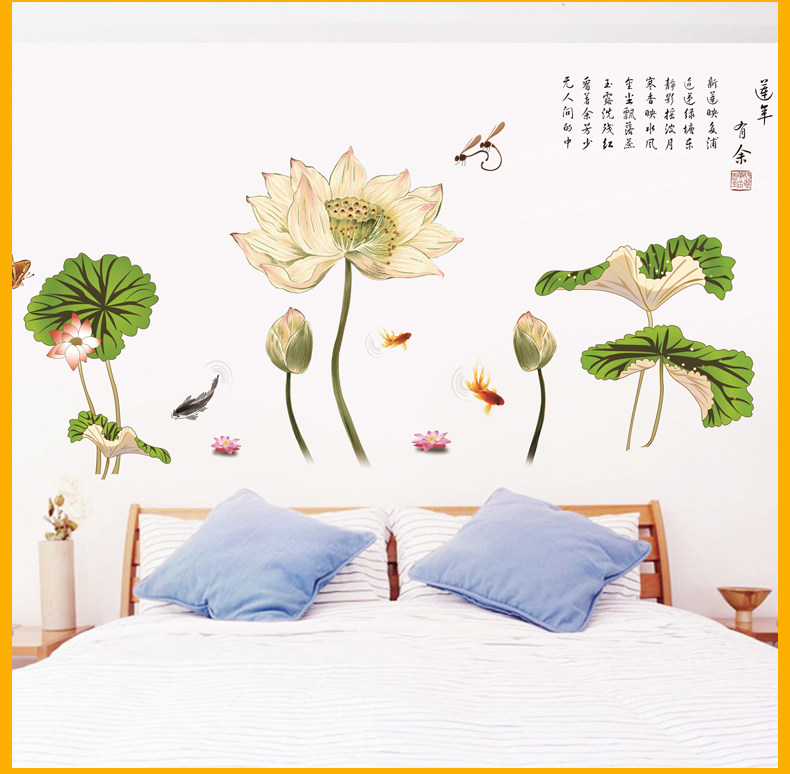 中国风超大古典莲花墙贴 卧室客厅装饰贴花电视背景墙壁贴纸画贴