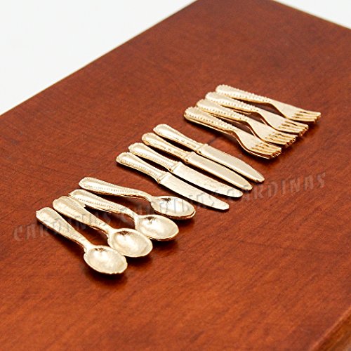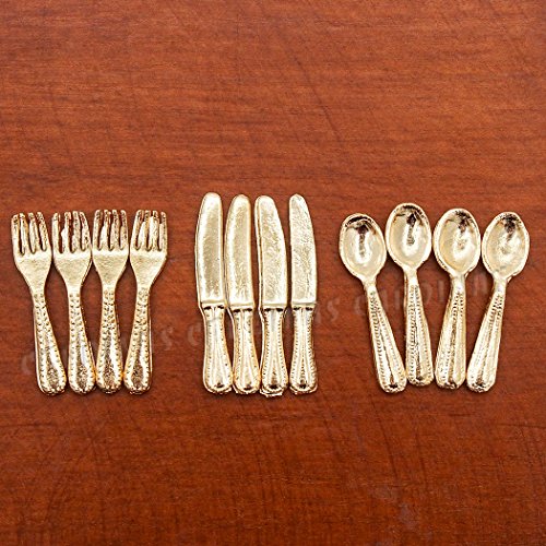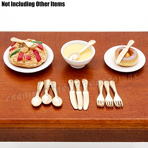 -. Title : Odoria 1:12 Miniature 12PCS Knife Fork Spoon Set Golden Flatware Dollhouse Kitchen Accessories