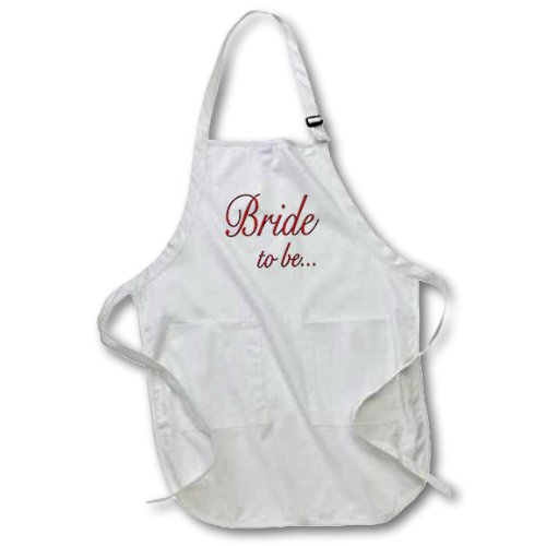 3dRose apr_161147_2 Bride to be Red Wedding Engagement Medium Length Apron with Pouch Pockets, 22 by 24-Inch