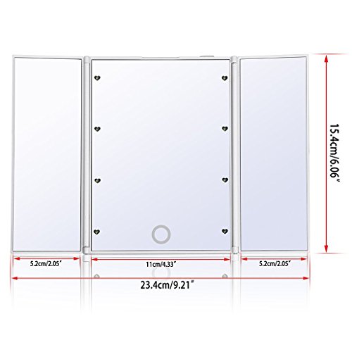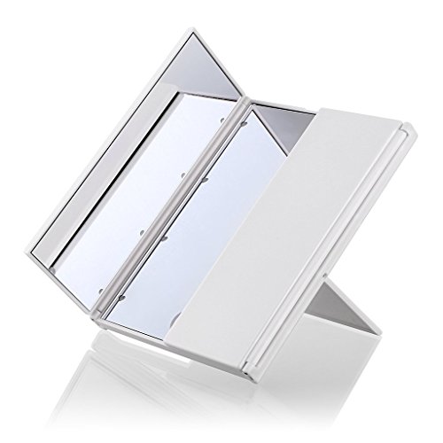 Makeup Mirror, HOPESOOKY Tri-Fold Lighted Portable Led Travel Mirror Compact for Cosmetic Makeup Folding Illuminating (White)