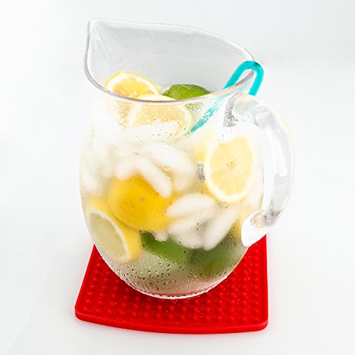 Large Coaster Spoon Rest: Flip it over, and you've got a handy coaster for ice-cold drink pitchers. The raised border and recessed columns on the back side provide a cavity that catches spills and water. Heat resistant, stain free and washable, is also great as a Spoon Rest.