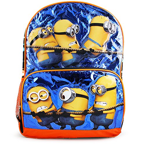 -. Feature : Black/Multi / Officially licensed Despicable Me children's accessory / Large size backpack dimensions approx 16"H x 12"W x 5"D / Features zipper closure, side pockets and adjustable padded shoulder straps / Imported