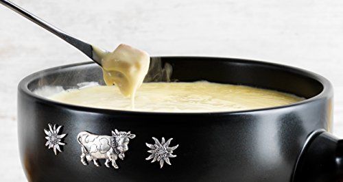 ReleaseDate : 2017-08-01 Studio : Kuhn Rikon Publisher : Kuhn Rikon Binding : Kitchen Product Description Black glazed fondue pot with silvercoloured stainless steel appliques makes every fondue gettogether into a festive feast. The fine select stainless steel appliques with cow and edelweiss motif match perfectly. The set consists of a high quality 23 cm fondue pot, which can also be used on an induction hob, rechaud, a fuel burner filled with paste and 6 forks with bamboo wood handles. Simply light and enjoy. 0