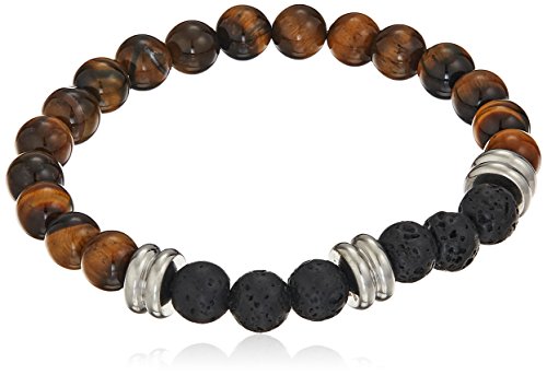 Men's Steeltime Tiger Eye And Black Lava Beaded 18k Gold Plated Link Bracelet, 8"