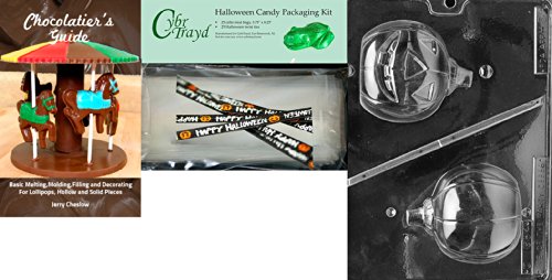 Cybrtrayd "Solid Hollow Pumpkin" Chocolate Mold with Chocolatier's Bundle, Includes 25 Cello Bags and 25 Happy Halloween Twist Ties