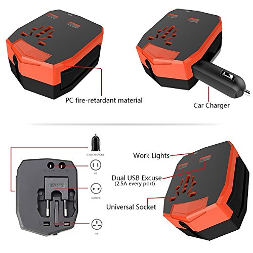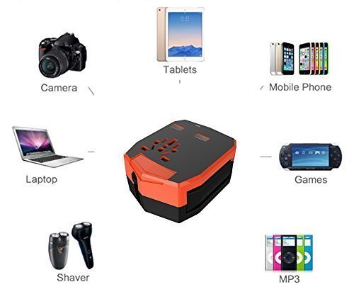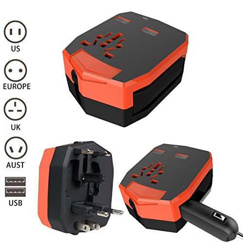 Worldwide Power Adapter Plug (Europe/US//UK/AU), KINDEN International Universal Travel Wall Charger Dual USB Car Charger AC Socket (Orange)