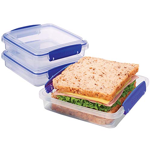 With a slim, rectangular design that is perfect for sandwiches, the Sistema KLIP IT Collection Sandwich Box makes a valuable addition to on-the-go lunches. This food storage container comes equipped with easy-locking clips and a flexible, tight seal to help keep your sandwich fresh until you’re ready for lunch. Crafted from BPA- and phthalate-free plastic, the container is dishwasher-safe when placed on the top rack, microwave-safe without the lid, and safe for storing in fridges and freezers. And thanks to its modular stacking design and compact footprint, this rectangular plastic container helps you save valuable kitchen space.Feature