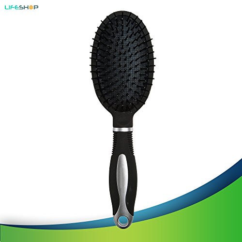 LifeShop Oval Air Cushion Scalp Massage Comb Smooth Paddle Brush Smooth Ball Tipped Bristles - Black