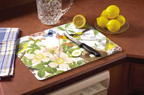 CounterArt Botanical Birds Glass Cutting Board, 15 x 12 Inches