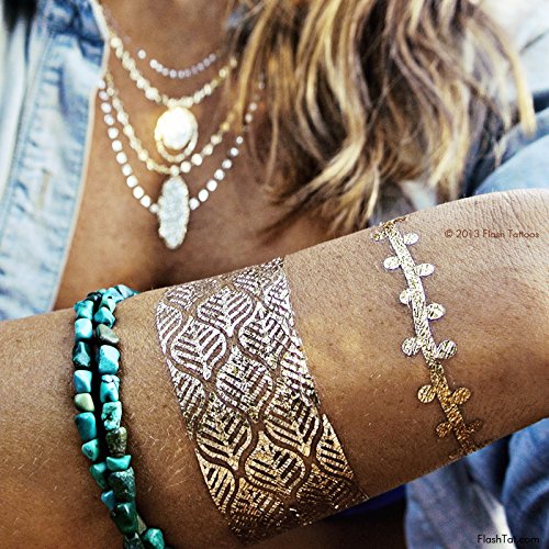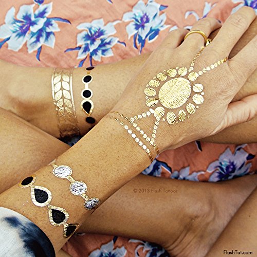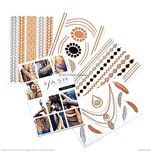 -. Title : Flash Tattoos - Zahra - Authentic Metallic Temporary Tattoos