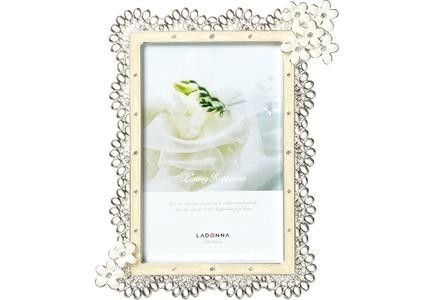 ロマンチックなお花モチーフは付け替え可能。お好みの位置に咲かせて楽しんで。 製造国:中国 素材・材質:亜鉛合金、エポキシ、クリスタル 仕様:外寸:136×190mm内寸:102×152mm窓寸:92×142mm(ポストカード判)マット窓寸:77×115mm(L判)置き専用縦横兼用 ※サプライヤー直送品 ご注文後3~4営業日後の出荷となります【商品名】ラドンナ ブライダルフォトフレーム 花モチーフ 136×190 MJ72-P-WH