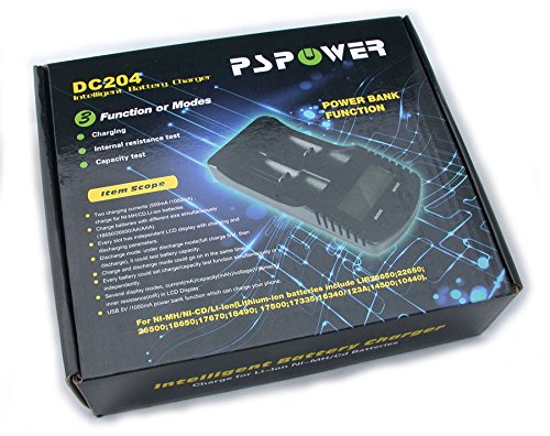 PSPower DC204 Two Channel Battery Charger - Tester and USB Power Bank for Li-ion NiMH NiCd 26650 18650 AAA AA C subC