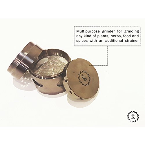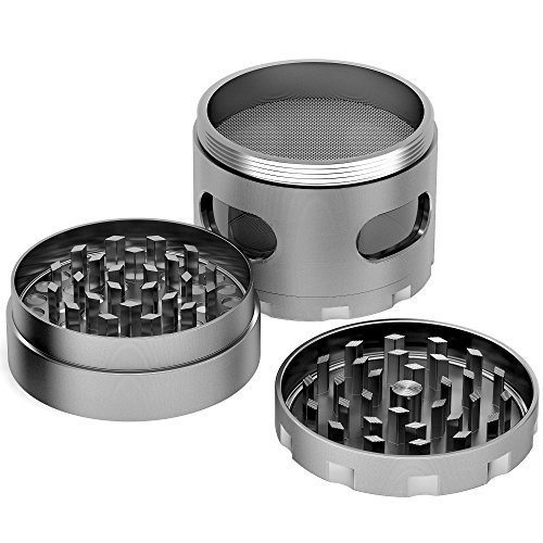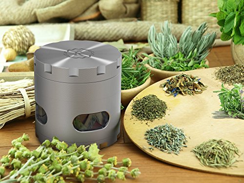 Product Description HERE'S AN HERB TOBACCO WEED GRINDER THAT DOES IT ALL. With precision polymer teeth and sharp steel blades, this grinder is designed to work with the broadest range of herbs and spices. Whether dried herbs or fresh green leaves, this grinder can handle both without clogging or jamming. YOUR HERBS WILL BE CHOPPED CLEANLY,not ripped or shredded. This type of chopping action is the best way to keep essential oils inside the product, thus retaining maximum flavor and aroma. THE CLEAR STORAGE COMPARTMENT lets you keep track of how much product you've ground, and is generously sized, holding up to six heaping tablespoons. For herbs where pollen is a valued component, there's a 100-micron mesh screen to separate out pollen from the storage chamber and a second chamber to catch the pollen. THIS IS A STURDY AND PRECISELY ENGINEERED TOOL, made from high-grade zinc and tough polycarbonate plastic. It will withstand long use and is made to last a lifetime. Great for cooks, aficionados of fine tobacco and other smokable products, for those who like to chop and blend their own medicinal or flavorful teas, and many others. . So what are you waiting for? Just Click on "ADD TO CART" and buy from the best. Your purchase is backed by a 100% life time guarantee, no questioned ask. Hassle-free warranty. 0 |