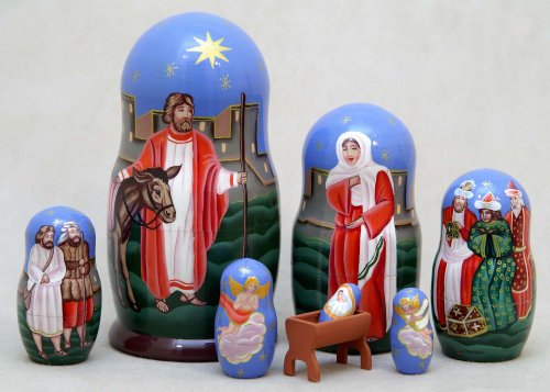 -. Title : Manger Scene Russian Nesting Doll 7pc./6"