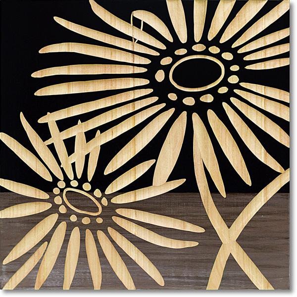 天然の木にペイントを施し、熟練した職人が彫刻刀を使って、1枚1枚彫っています。様々な木目が現れ、ネーチャーなモダンアートです。