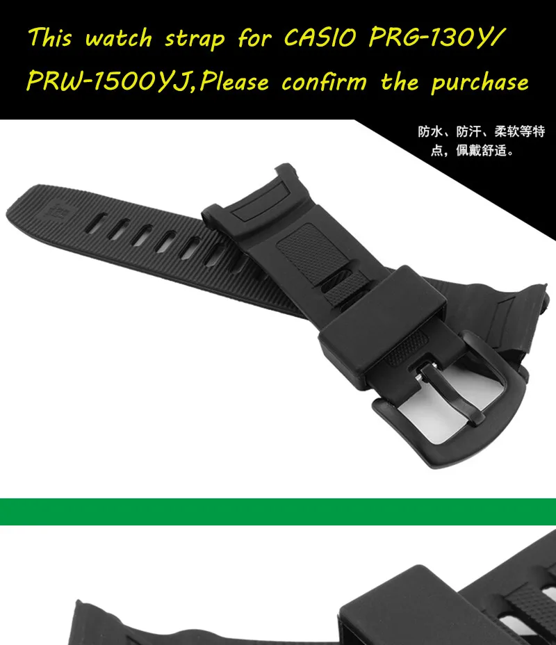 Zhuolei 손목 카시오 PRG-130Y/PRW-1500YJ 시계 밴드 블랙 실리콘 고무 스트랩 등반 팔찌