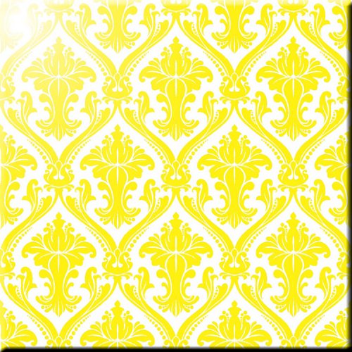 Rikki Knight RK-8intilec-9223 8" X 8" Yellow Damask Design Ceramic Art Tile